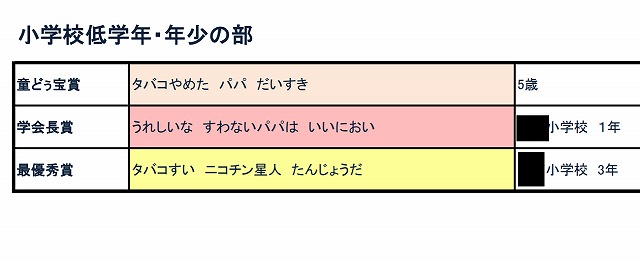 禁煙・受動喫煙防止川柳の年少の部最優秀賞がこちら