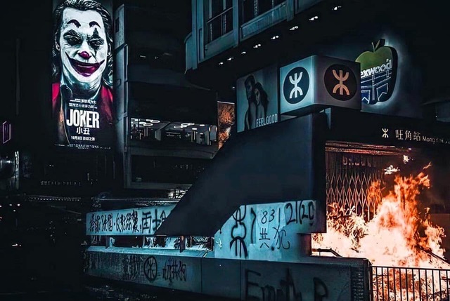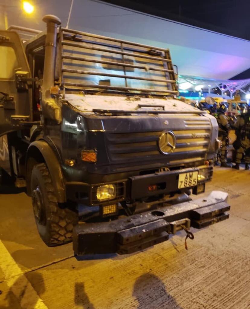 たったいま警察が装甲車で香港理工大学に突入しようとしたが デモ者に火炎瓶に撃退されました