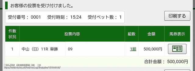 単勝30万円。ボーナス半分注ぎ込んだで。