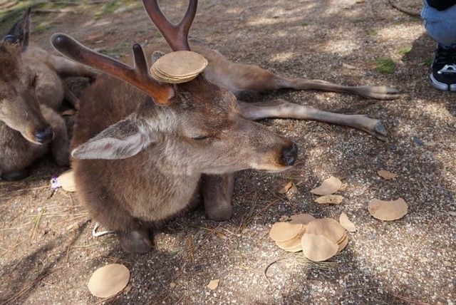 鹿がせんべいを平和裏に獲得する方法を理解した結果なんやね。