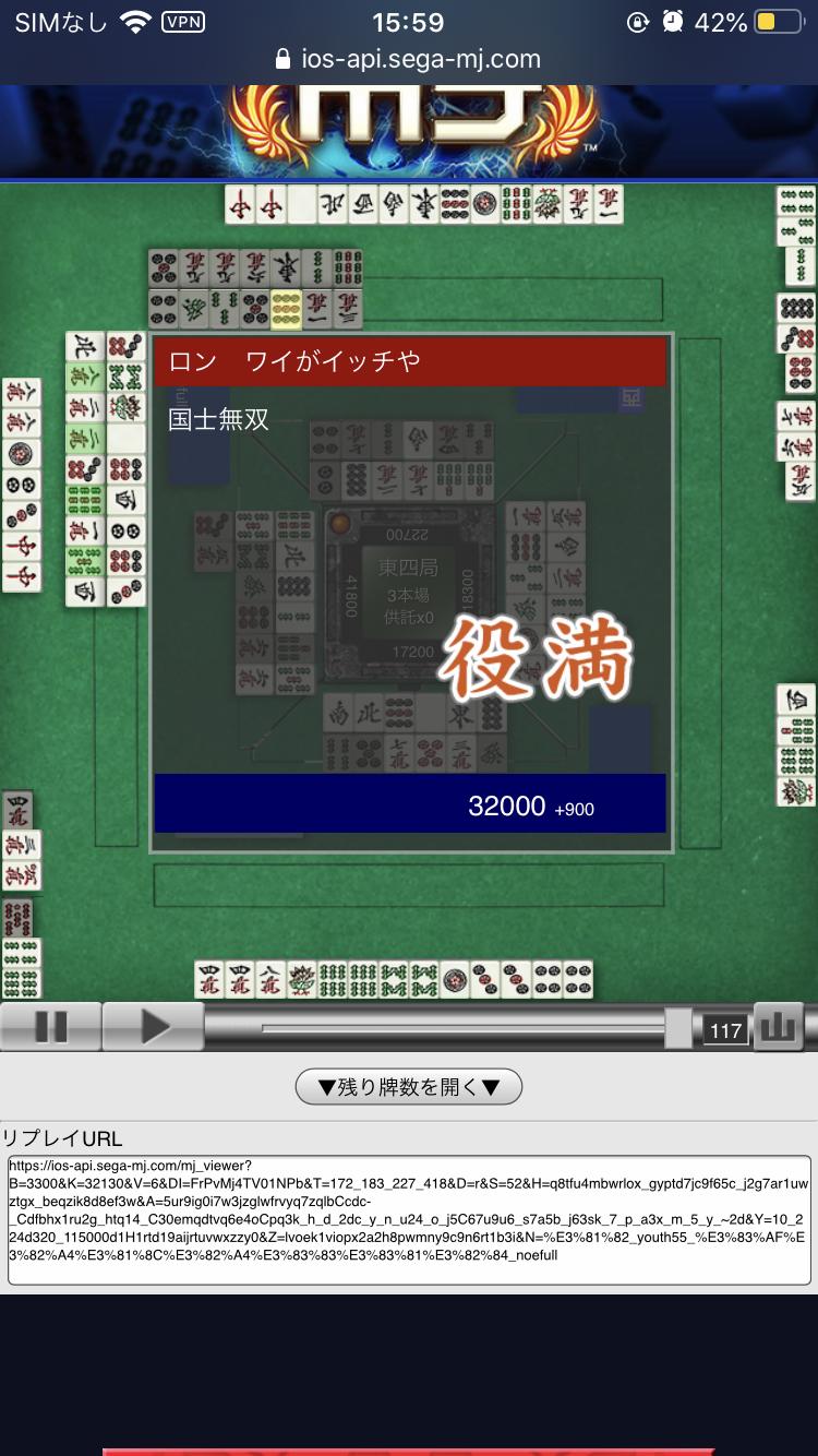 イッチ、国士無双で勝利