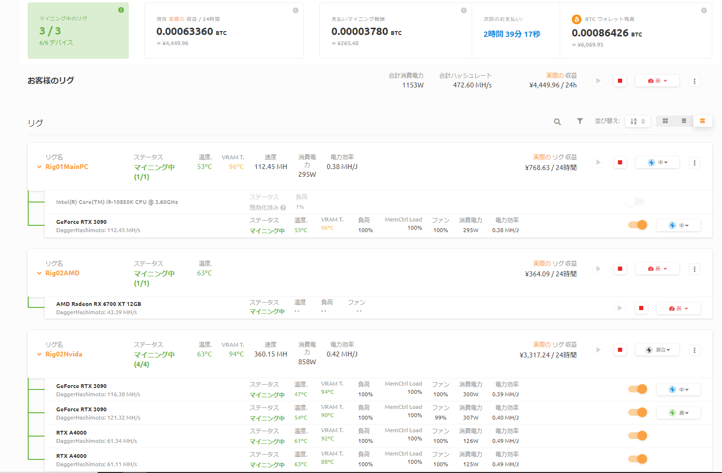 しかもマイニングリグも電気代も確定申告時には経費扱いにできるってのも大きい