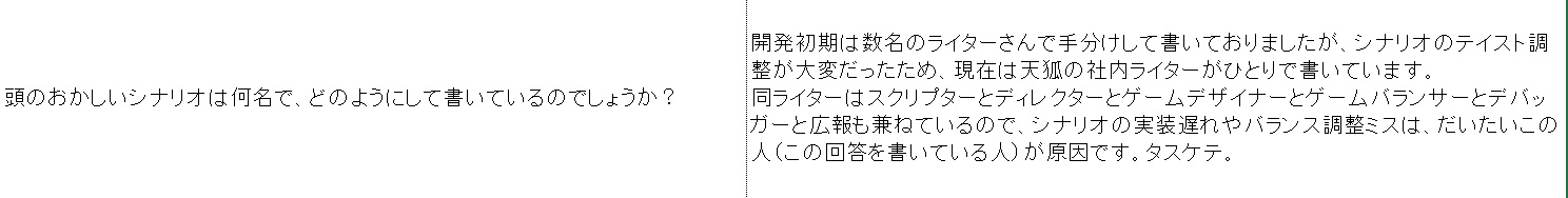 ゲームデザイン・シナリオ・素材管理・デバッグそのほか根幹作業を実は開発会社のスタッフひとりがワンオペでやってました