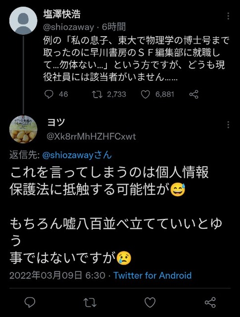 ワイ関係会社で働いてて2人とも名前無いの確認したからな