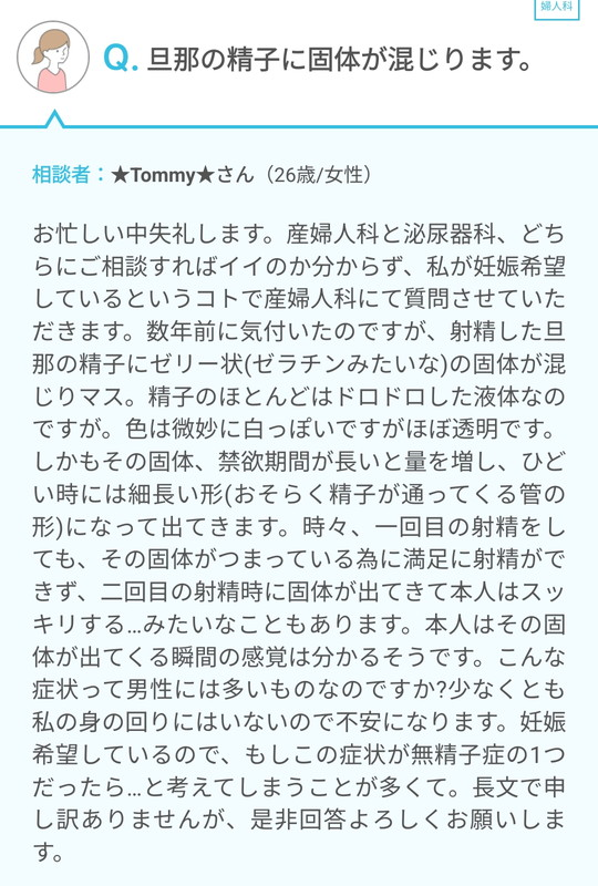 わいの精子、痰みたいにドロドロなんやが
