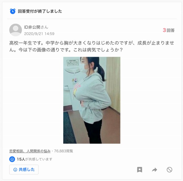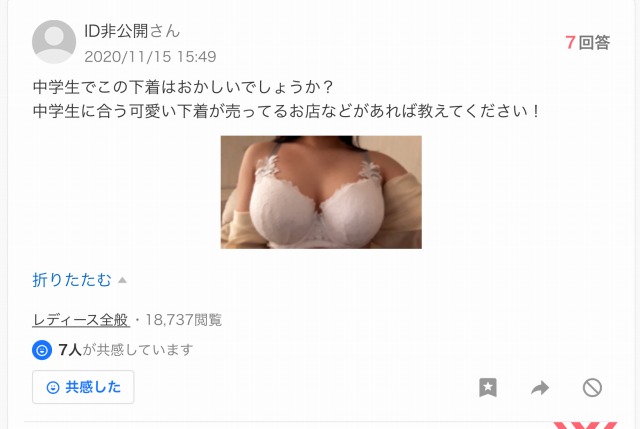 中1女子「ブラが合わなくてお●ぱいが痒いです…」→知恵袋で生お●ぱいを投稿