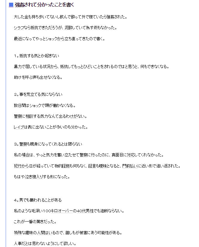 実際男嫌いの女の気持ちがわかる奴ってホモ被害に遭った奴くらいなんやろうな