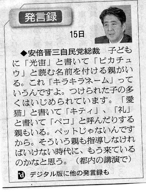 最近変な名前多すぎ。ランキング入ってるものも読めないの多い。