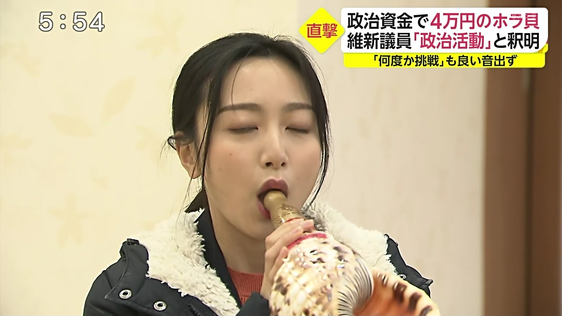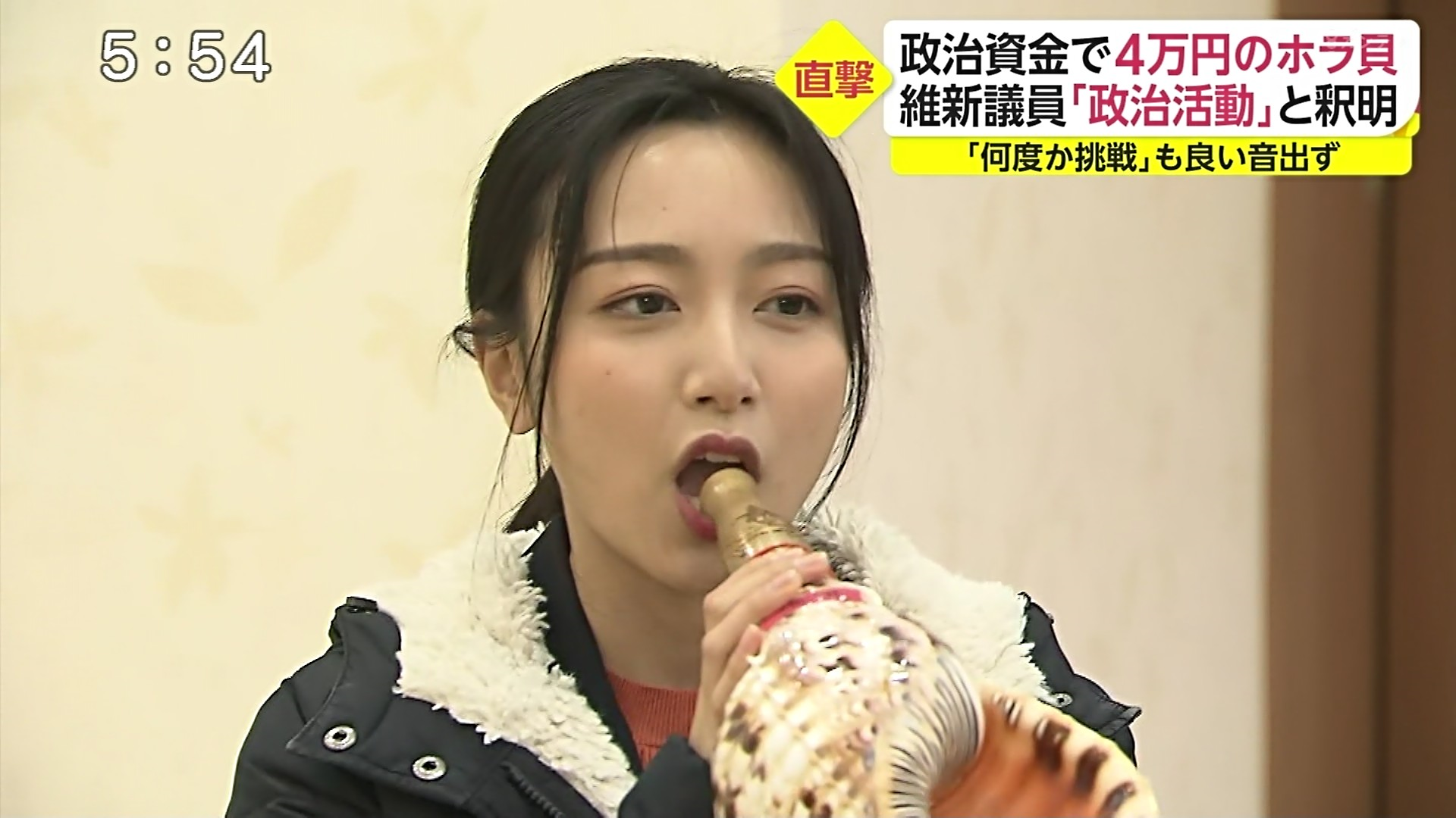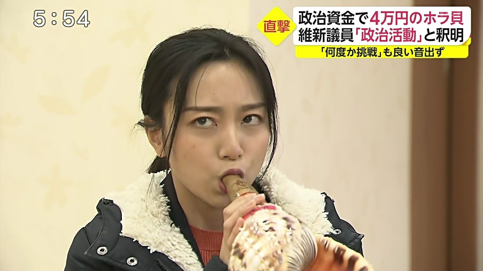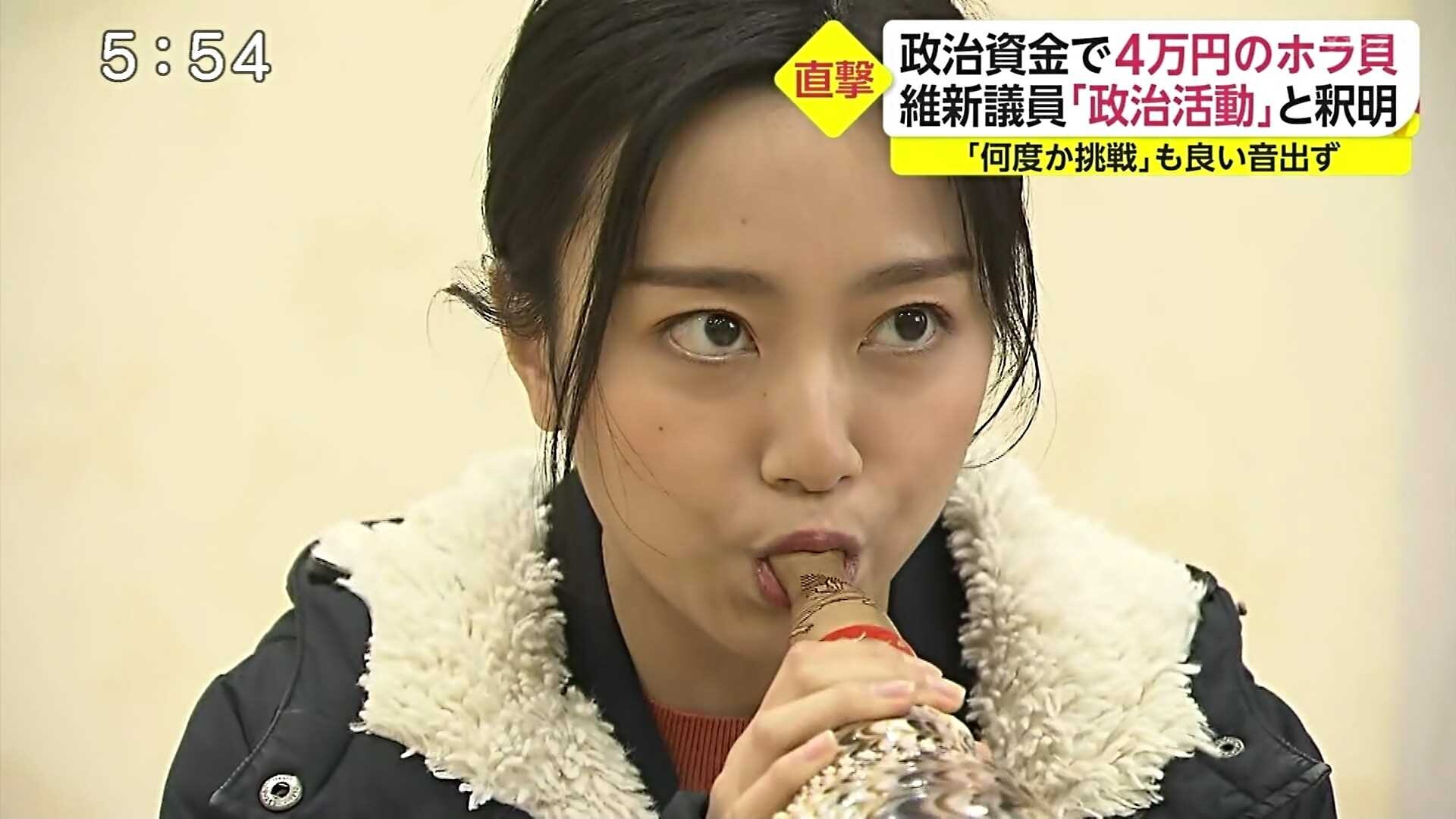 【画像】女子アナさん、とんでもなくエッチに法螺貝を吹く