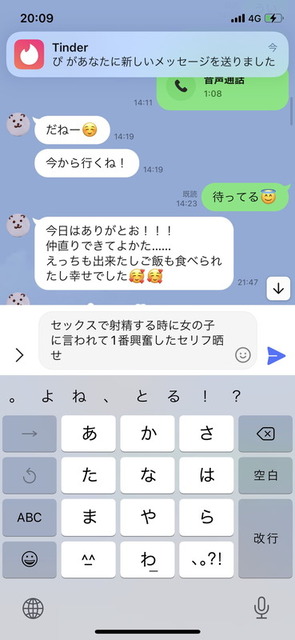 仲直り云々の話してるのにTinderの通知入り込んでんの草