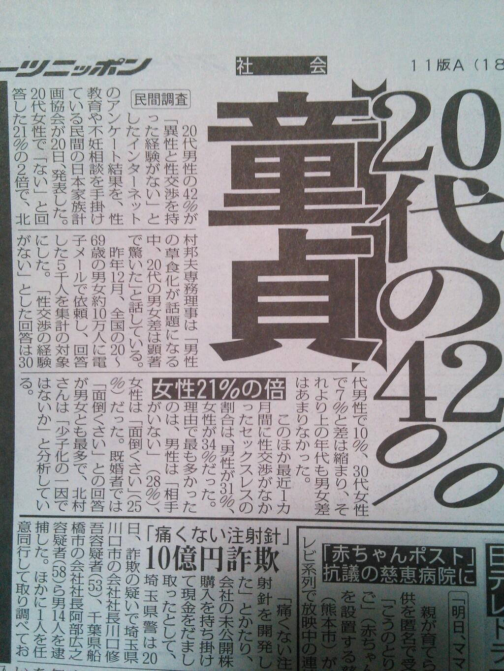 これ素人童貞含めたら5割超えるやろ