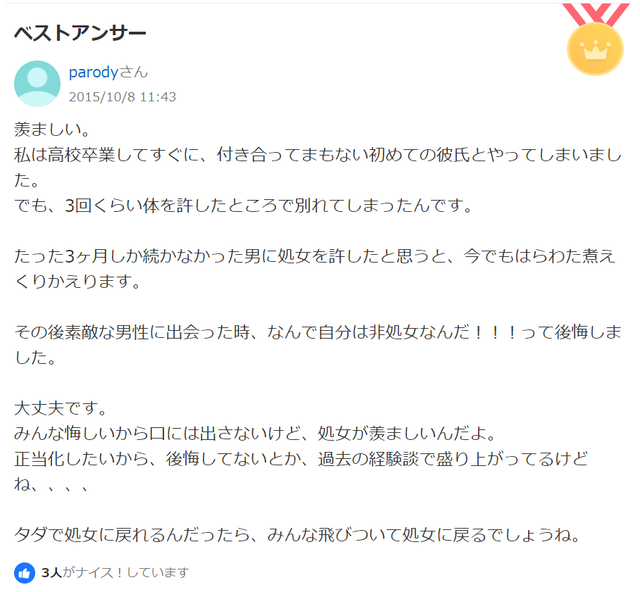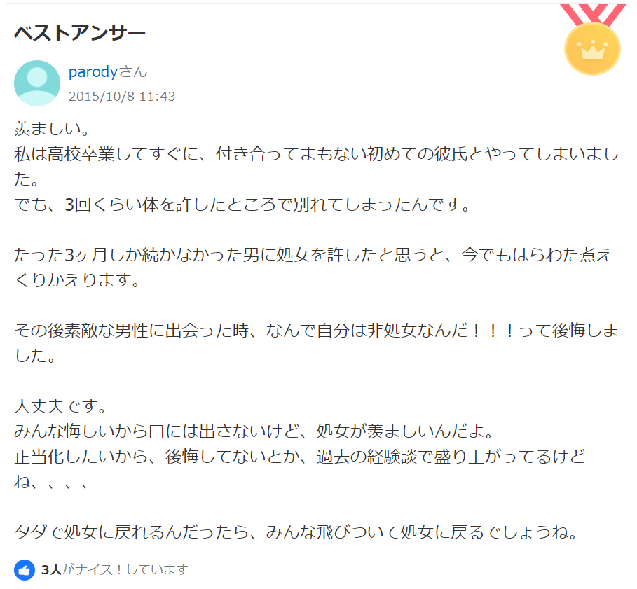 いつも思うんやが処女じゃないなら下手に2、3人とかより経験人数多いほうがよくね?