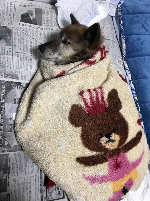 ワイの家のイッヌはお布団でぬくぬくや
