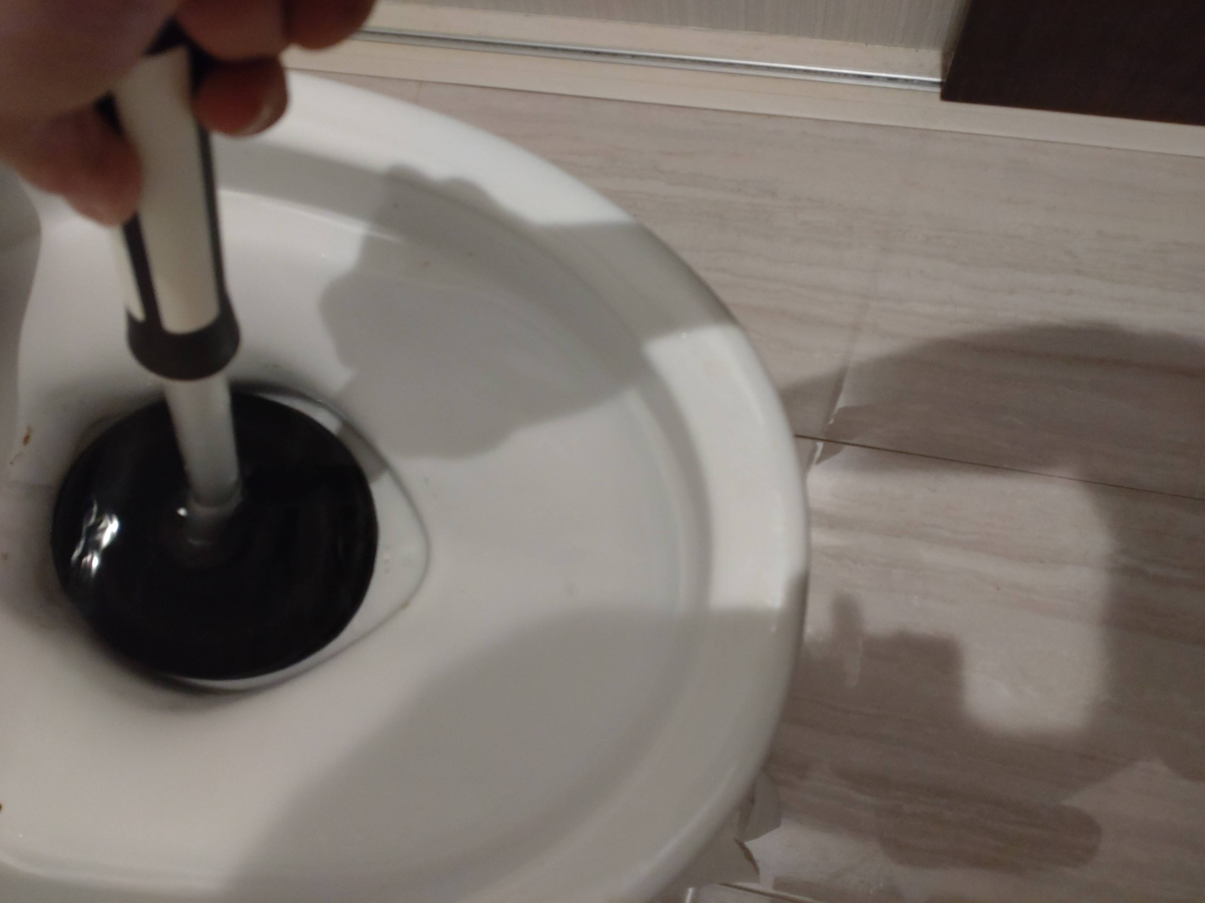 水が跳ねたりするのは諦める、というか水が跳ねるくらい勢いよくやらないとなかなか詰まりは取れない