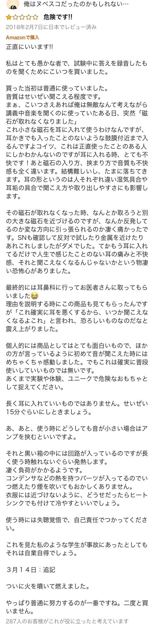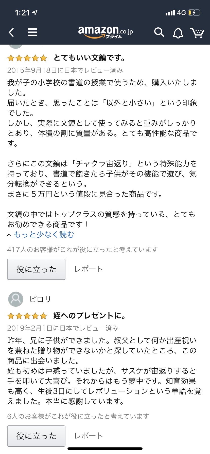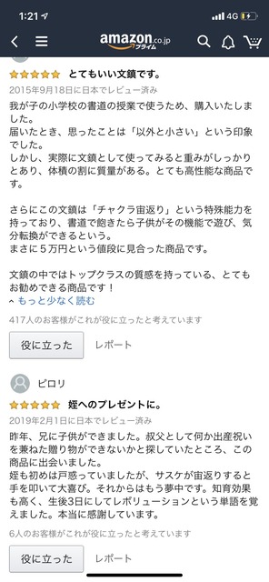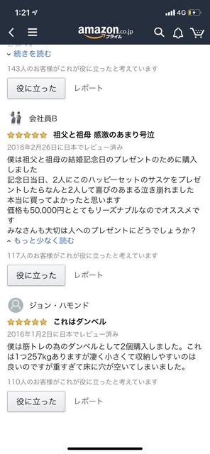 この手のレビュー見つけて5chのノリでウキウキでレスつけようと思って「役に立った」ボタンを押してしまうあるある