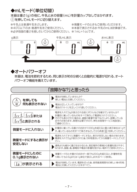 この秤、重さ量ってって表示がmlなのか?
