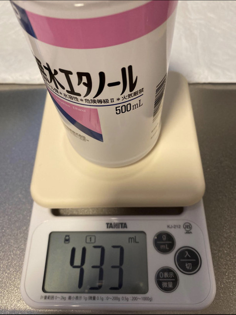 水でもエタノールでも433なのは変わらんで