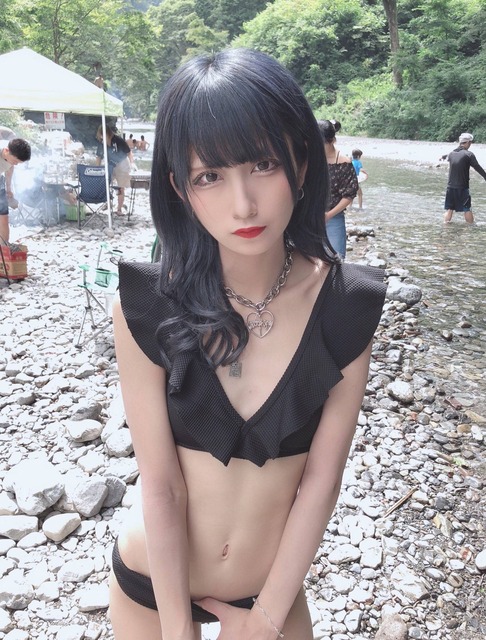 こういう首かけタイプの水着は屈むと高確率でポロリやぞ