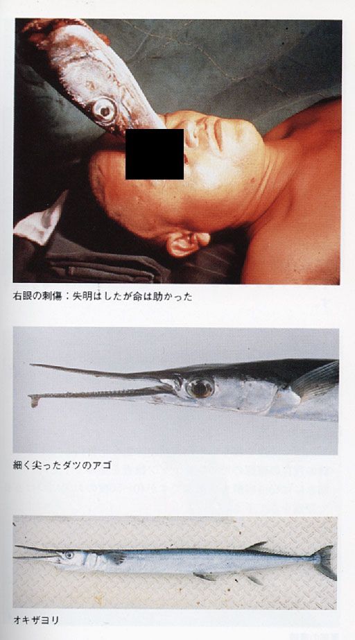 船の端のほうにいたらいきなりダツが飛んできて顔に刺さったらC