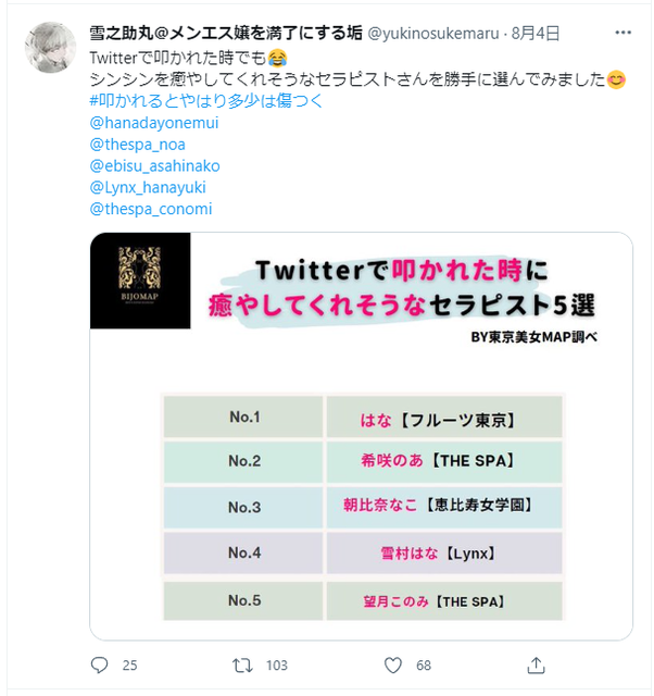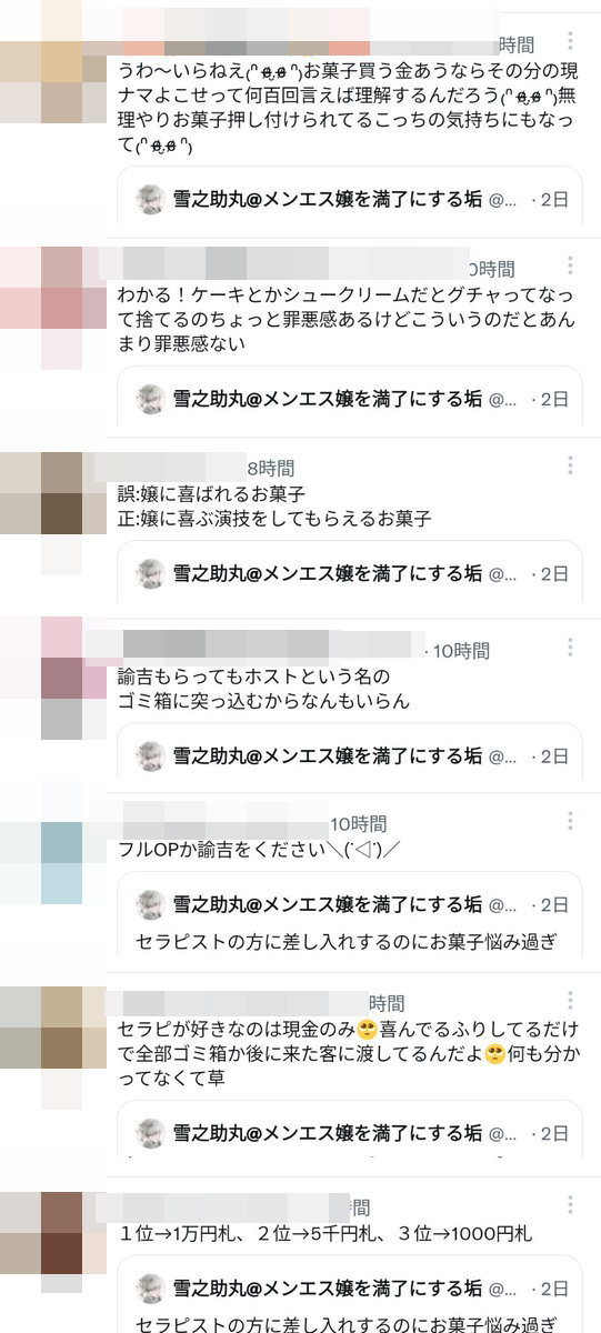 — 雪之助丸@メンエス嬢を満了にする垢 (@yukinosukemaru) August 2, 2022