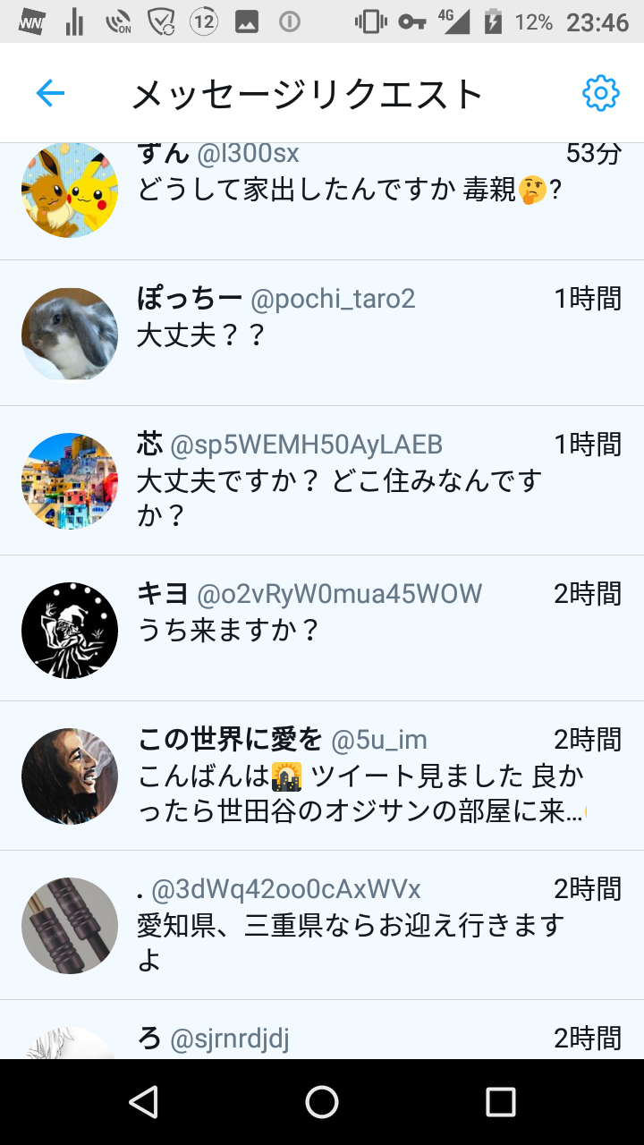 捨て垢で家出したとかツイートしたらマジで数十件DM来るで