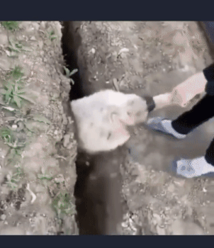 【画像】溝にハマり、全てを諦めたイノシシの表情