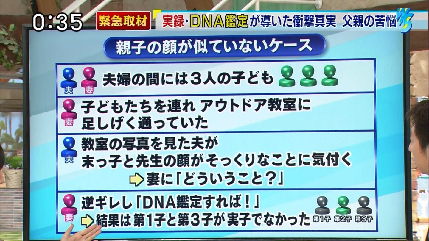 子どもが元彼によく似とるんやけど、DNA鑑定したらちゃんと夫の子だったみたいなデータもなかったっけ