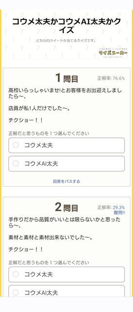 コウメ太夫かコウメAI太夫かクイズ | クイズメーカー - こたえてあそぶ・つくってあそぶ・クイズのプラットフォームサービス
